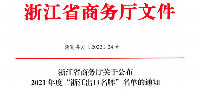 近日,浙江省商務(wù)廳公布了2021年度“浙江出口名牌”評(píng)選結(jié)果。經(jīng)過材料組織遞交、專家審核、相關(guān)部門意見征求、社會(huì)公示等6個(gè)多月的申報(bào)評(píng)審流程,…