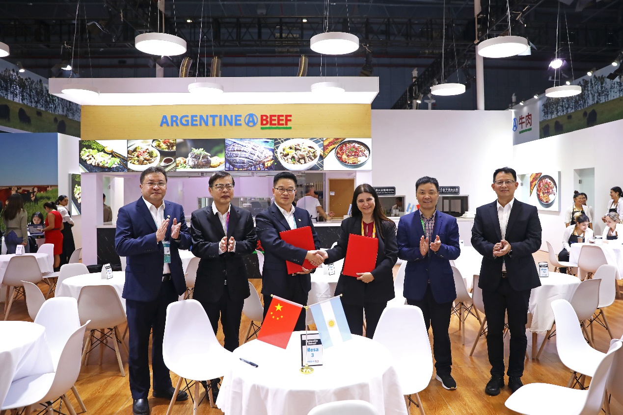11月6日上午, 在省國貿(mào)集團(tuán)黨委書記、董事長高秉學(xué),黨委委員、副總經(jīng)理張勇的先后見證下,浙江土畜分別參加浙江省交易團(tuán)進(jìn)口采購集中簽約儀式和展館現(xiàn)場(chǎng)簽約,與西班牙Litera Meat, S.L.U.、阿根廷Compania Bernal S.A.公司簽下2500萬美元豬肉進(jìn)口訂單和2500萬美元牛肉進(jìn)口訂單,兩單合計(jì)5000萬美元,較上屆進(jìn)博會(huì)增長5%以上,為明年進(jìn)口肉類業(yè)務(wù)穩(wěn)定發(fā)展打下了堅(jiān)實(shí)基礎(chǔ)。